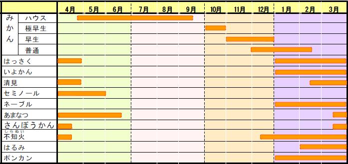 | 温州みかんは収穫時期によって、大きく「極早生みかん」、「早生みかん」、「普通みかん」に分かれます。「極早生みかん」は有田みかんのトップバッターとして出荷されるみかんで、主に10月から収穫・出荷が始まります。 「極早生みかん」には「ゆら早生」、「日南1号」、「上野早生」、「大浦早生」などの品種があります。 その中でも「ゆら早生」は和歌山県で発見された品種で、特に収穫時期が早く10月初旬から出荷されます。果皮が緑色でも果肉は糖度が高く、さわやかな風味のおいしいみかんです。 |